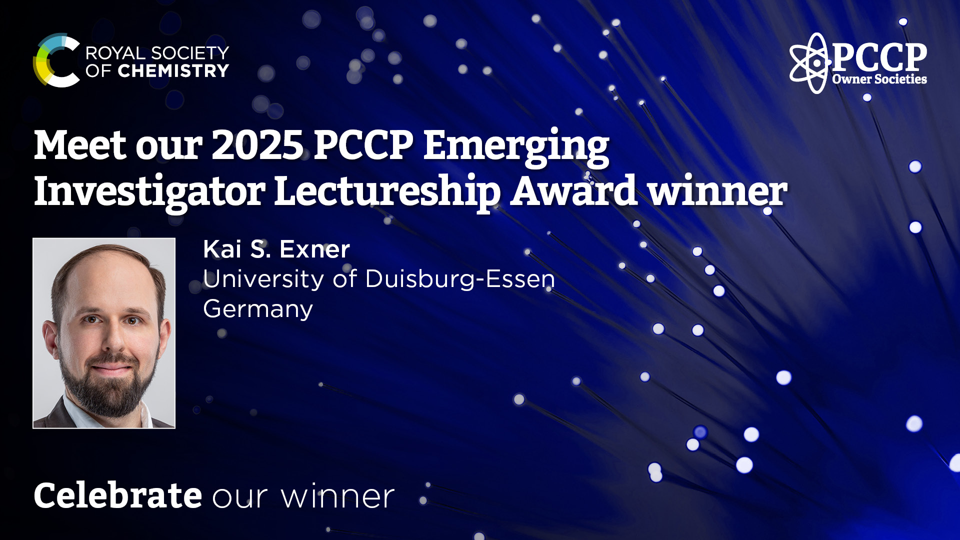 [09 September 2025] Congratulations to our PI Kai S. Exner (University Duisburg-Essen), who won the 2025 PCCP Emerging Investigator Lectureship Award! This prize is awarded to early career researchers who have made incredible contributions to physical chemistry, chemical physics or biophysical chemistry. Moreover, it acts as a platform to showcase their research to the wider scientific community.